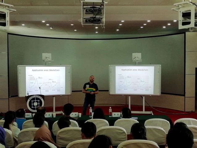 Carmine Ventre教授在抛出 “什么是计算金融学”的问题后直接切入正题。在他看来,计算金融学就是将先进的计算方法应用于财务,以发挥协同作用为目标,并列举实例佐证。随后,Carmine Ventre教授以电影The Imitation Game和A Beautiful Mind中的情节为例引出了博弈论的推理话题并延伸出博弈论三个具体的推理案例:政府决策、搜索引擎以及公共物品的分配,以规划道路、赞助搜索拍卖和频谱拍卖清晰地概述了计算机科学和工程相关内容以及激励在金融中的作用。最后,Carmine Ventre教授由计算博弈论这一话题出发,进行了金融监管、拍卖和比特币/区块链安全的博弈理论分析。除此以外,他的报告还阐述了最新人工智能的相关算法研究以及人工智能和大数据技术在科学与决策理论中的应用。讲座在现场师生们热烈的掌声中落下帷幕。此次讲座,不仅给b体育sports官方网站师生提供了一个与大师对话的平台,从而获取最前沿的学术信息,更是营造了良好的学习交流氛围,有助于推动b体育sports官方网站在学术科技方面朝着新方向迈进。