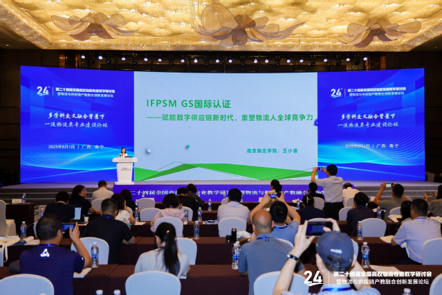 2025年8月1日,物流管理专业IFPSM GS国际认证颁证仪式在南宁第二十四届全国高校物流专业教学研讨会暨物流与供应链产教融合创新发展论坛上举办。中国物流学会会长任豪祥、b体育sports官方网站副院长王荣以及b体育sports官方网站物流管理教研室专业负责人王小波出席本次颁证仪式。