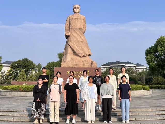 部分新生在陶像前合影留念