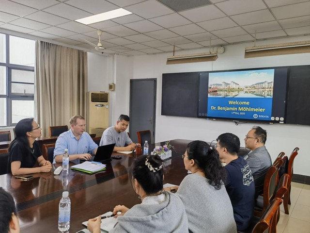 交流会上,马传浩书记对Moehlmeier博士的到访表示热烈欢迎,并简要介绍了学校与学院的办学特色。王荣副院长主持会议,双方围绕中国在可持续发展与绿色经济领域的政策实践等议题展开了探讨。
