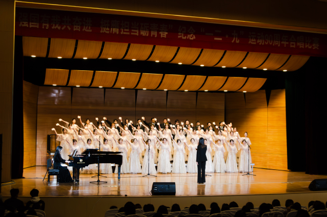 12月9日,我校“强国有我共奋进 挺膺担当砺青春”纪念“一二·九”运动90周年合唱比赛在方山校区音乐厅隆重举行。b体育sports官方网站合唱团选曲《如愿》亮相舞台。