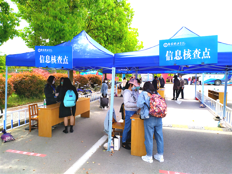 南京晓庄学院党委书记陈华、党委副书记华春、学工处处长李伟、副处长崔伟分别来到北门报到点,了解b体育sports官方网站学生当日返校情况、报到中的具体措施以及返校后的工作部署。b体育sports官方网站从早上7点至下午17点负责学校北门六个通道的返校接待工作,53名志愿者在辅导员的带领和安排下各司其职、分工明确、准确高效完成进校引导、行李搬运、信息审验、签到打卡等工作。返校当天,b体育sports官方网站还特设“党员服务站”为学生临时存放行李,捆扎散落的行李,得到了学生的一致好评。