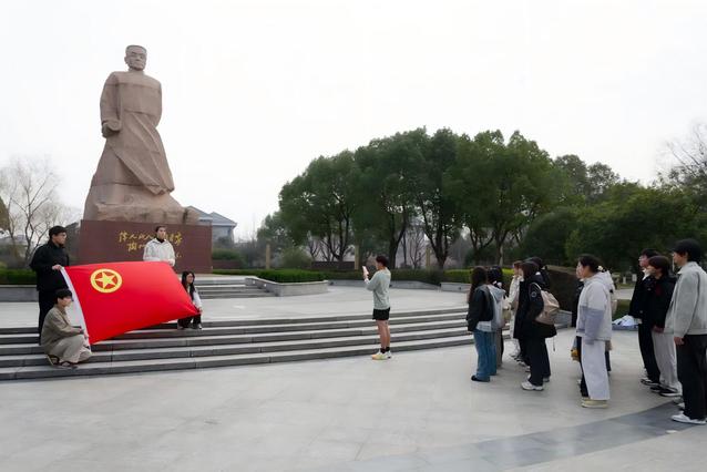 正午的合一广场,春风和煦,红旗飘扬。全体同学在陶行知像前整齐列队,面向团旗,庄严重温入团誓词。铿锵誓言在广场上空回荡,表达了商院学子赓续行知精神、勇担时代使命的坚定信念。