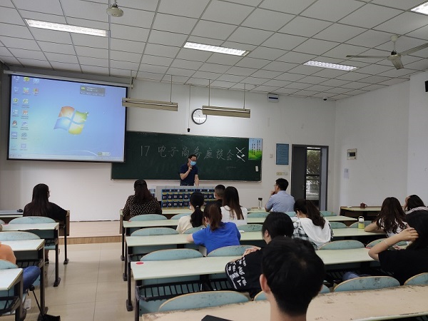 姜院长就后续的学业课程安排做了详细的解答。他给同学们详细介绍了学分分布、课程内容、课程计划安排表、未来几周及下学年的课程安排等,同时宣布启动17电子商务班的毕业论文工作。