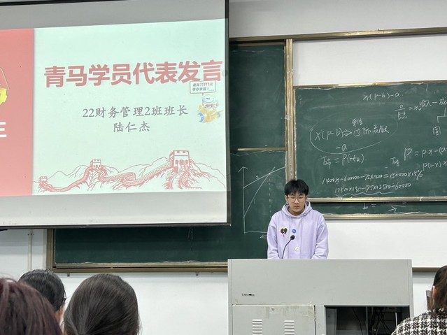仪式开始,全体师生起立,奏唱中国共产主义青年团团歌。b体育sports官方网站实践与志愿者工作部副部长王贵贤宣读本次“青马工程”培养方案及考核要求。自律会成员毛璐璐和22财务管理2班班长陆仁杰代表全体青马学员做出郑重承诺。最后,杨治菁老师向全体同学介绍了“青马工程”初级班的意义,勉励学员们在培训中提升个人实践技能,努力成为同学学习的榜样。