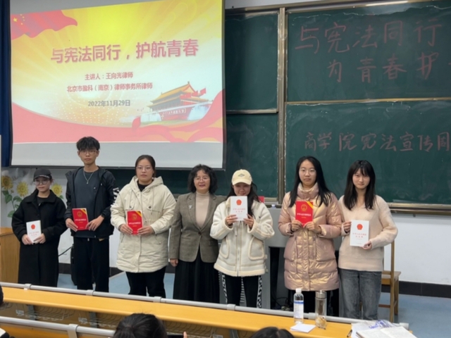 在12月4日“国家宪法日”即将到来之际,为宣传宪法知识,弘扬宪法精神,增强当代大学生的法治观念, 11月29日下午,b体育sports官方网站在元培100开展“与宪法同行,为青春护航”宪法主题讲座。讲座由北京市盈科(南京)律师事务所高级合伙人王向光律师主讲,b体育sports官方网站党委副书记马仕锦主持。