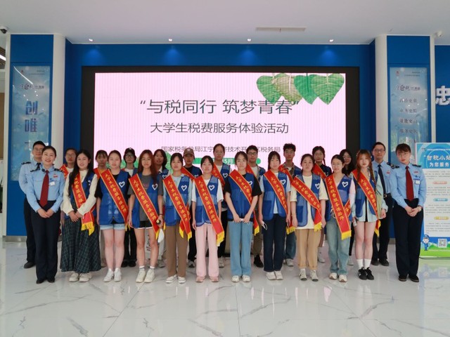 2023年5月23日,b体育sports官方网站组织20名学生代表前往国家税务总局南京江宁经济技术开发区税务局参观,沉浸式体验现代化税收管理新模式,提升商科大学生税收意识与理念。
