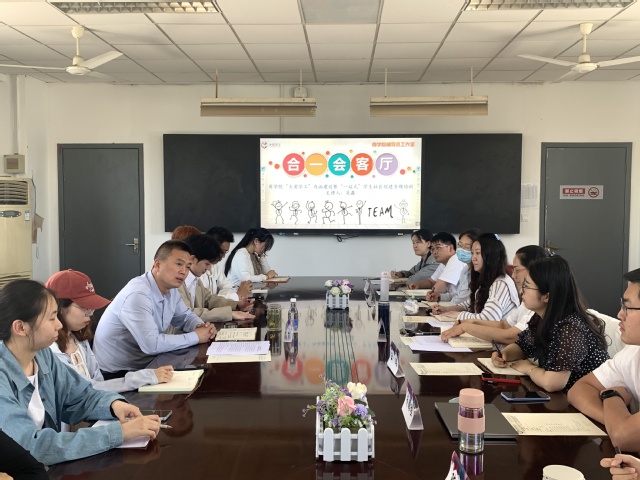 5月14日下午,b体育sports官方网站辅导员工作室“合一”会客厅邀请了学工处处长吴鑫在元培楼218会议室举办了“大爱学工”主题沙龙。活动由学院党委副书记马仕锦主持,学院全体辅导员和学生骨干参加了活动。